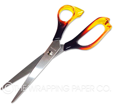 Size 215mm. Classic adult sized scissors, designed to easily cut paper or ribbon. Rust free stainless steel blades & ergonomic plastic contoured handles. Wrapco recommends a separate pair of scissors for ribbon & paper to maintain sharpness.