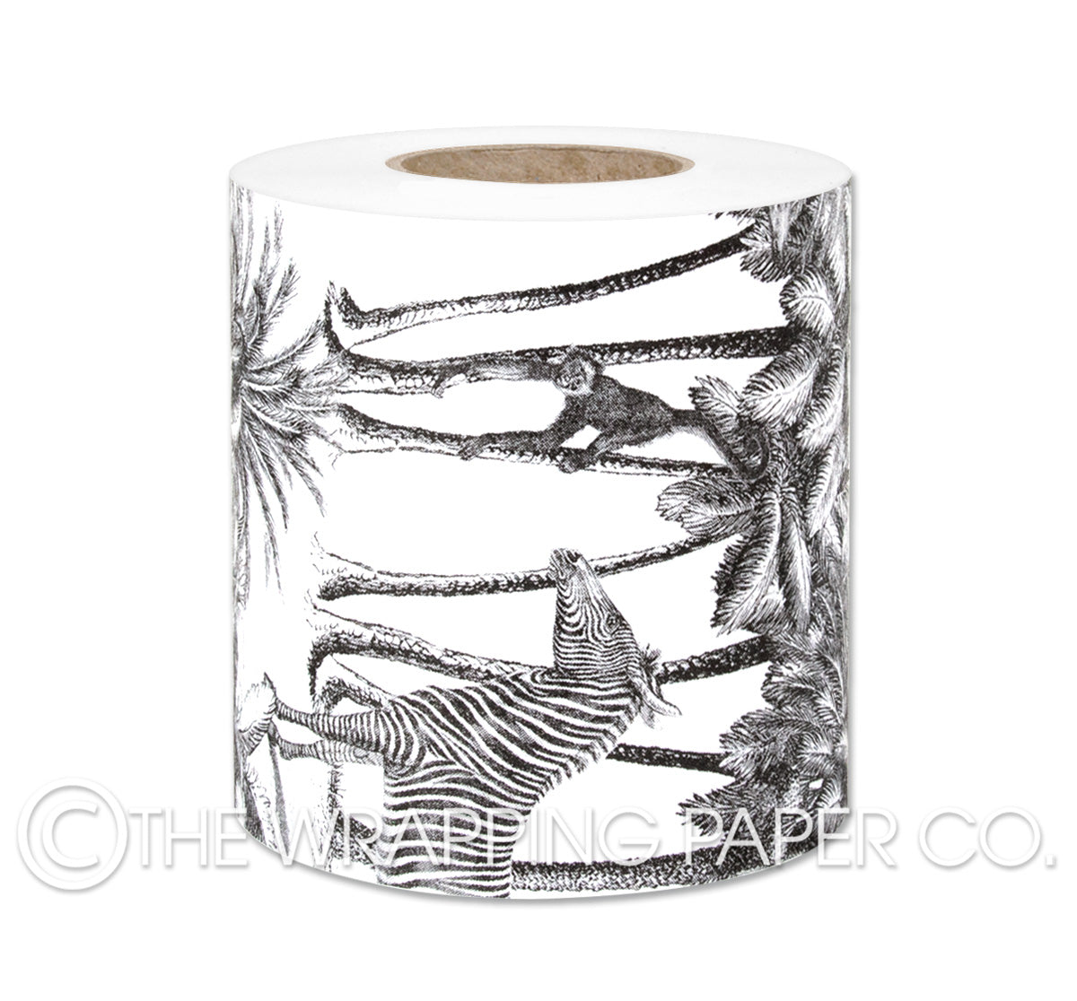 SAFARI B&W Belli-Band® 90mm x 50 mtr. Designed & Manufactured in Australia using strong 80gsm matt white paper sourced from certified sustainable plantation forests. A Belli-Band is a paper strip of gift wrap used as a decorative embellishment when gift wrapping. Designed by Chloe Eman. All designs are Copyright of The Wrapping Paper Co.