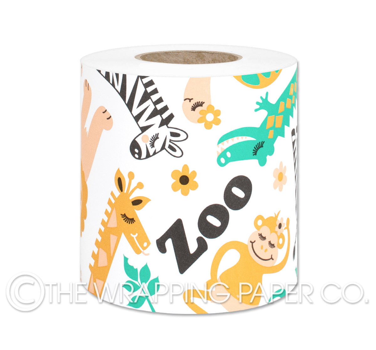 ZOO 4U2 TEAL Belli-Band® 90mm x 50 mtr. Manufactured in Australia using strong 80gsm matt white paper sourced from certified sustainable plantation forests. A Belli-Band is a paper strip of gift wrap used as a decorative embellishment when gift wrapping. All designs are Copyright of The Wrapping Paper Co.