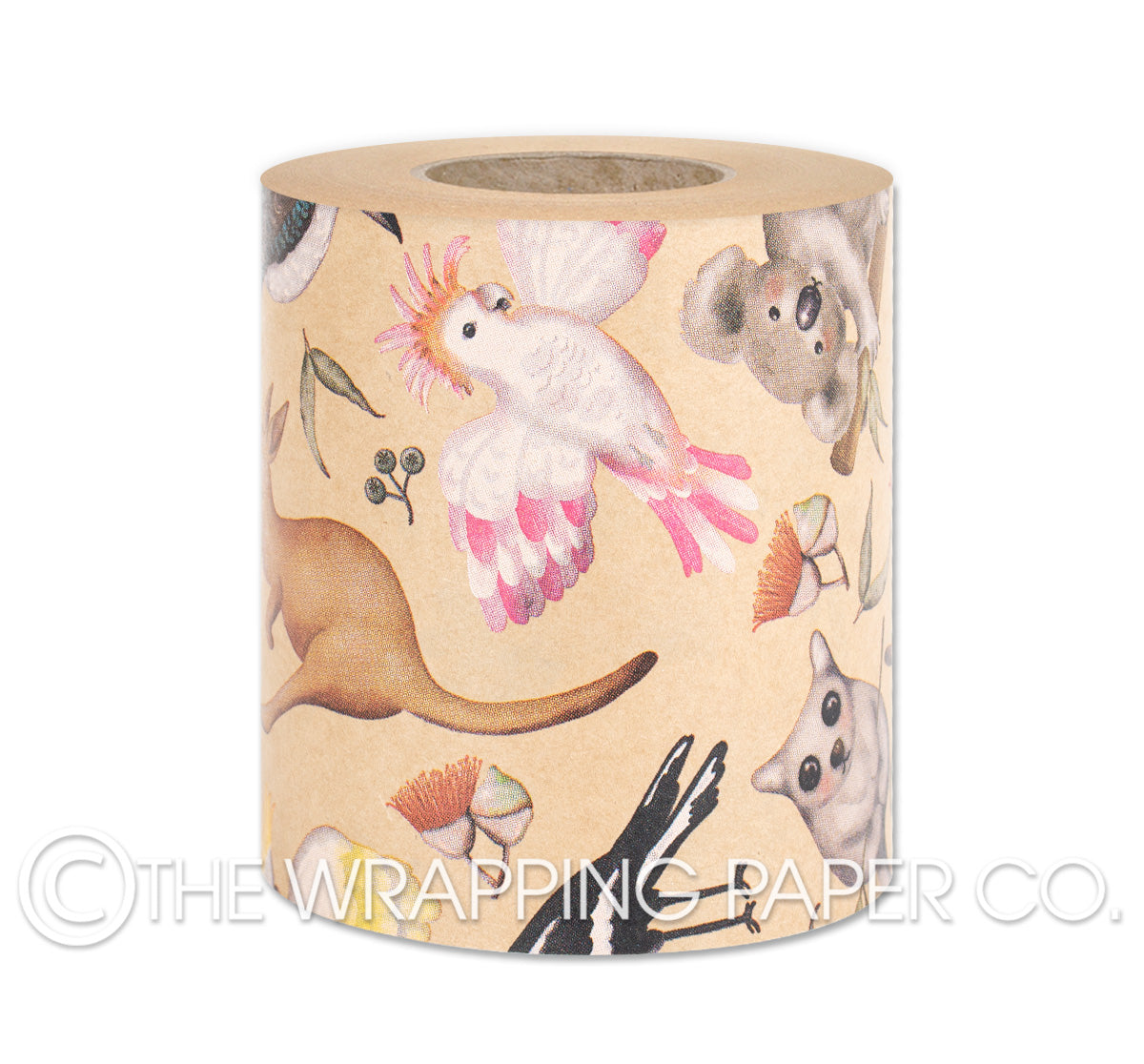 DOWN UNDER KRAFT Belli-Band® 90mm x 50 mtr. Designed & Manufactured in Australia using strong 60gsm unbleached brown kraft paper sourced from certified sustainable Australian plantation forests. A Belli-Band is a paper strip of gift wrap used as a decorative embellishment when gift wrapping. Designed & Illustrated by Carolyn Dam. All designs are Copyright of The Wrapping Paper Co.