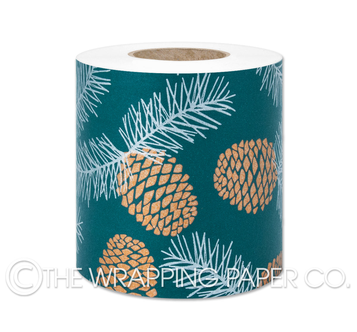 PINE CONES GREEN Belli-Band® 90mm x 50 mtr. Designed & Manufactured in Australia using strong 80gsm matt white paper sourced from certified sustainable plantation forests. A Belli-Band is a paper strip of gift wrap used as a decorative embellishment when gift wrapping. All designs are Copyright of The Wrapping Paper Co.