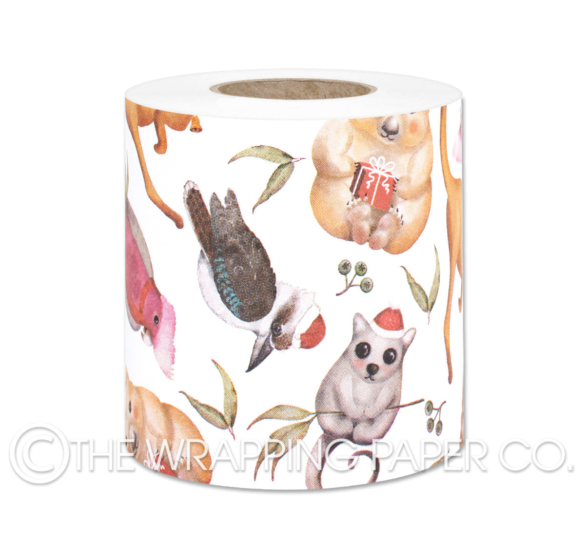 BUSH XMAS Belli-Band® 90mm x 50 mtr. Designed & Manufactured in Australia using strong 80gsm matt white paper sourced from certified sustainable plantation forests. A Belli-Band is a paper strip of gift wrap used as a decorative embellishment when gift wrapping. Designed & Illustrated by Carolyn Dam. All designs are Copyright of The Wrapping Paper Co.