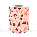 TERRAZZO ROSA Belli-Band® 90mm x 50 mtr. Designed & Manufactured in Australia using strong 80gsm matt white paper sourced from certified sustainable plantation forests. A Belli-Band is a paper strip of gift wrap used as a decorative embellishment when gift wrapping. Designed by Chloe Eman. All designs are Copyright of The Wrapping Paper Co.
