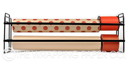 Dispenser size 650mm wide. Manufactured in Australia - for dispensing from two Counter Rolls 500mm x 60 metres and a combination Belli Bands & Ribbons. This product is designed for The Wrapping Paper Co. products and is not guaranteed to fit products from other suppliers.This dispenser does not have a cutting edge. Wrapco recommends that you always use scissors to cut your gift wrap. Can be used on counter top or wall mounted. Made in Australia.