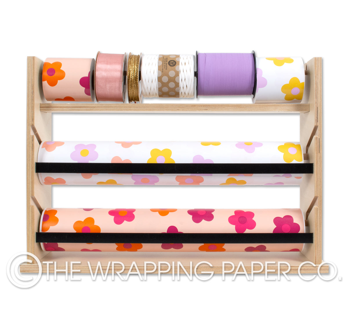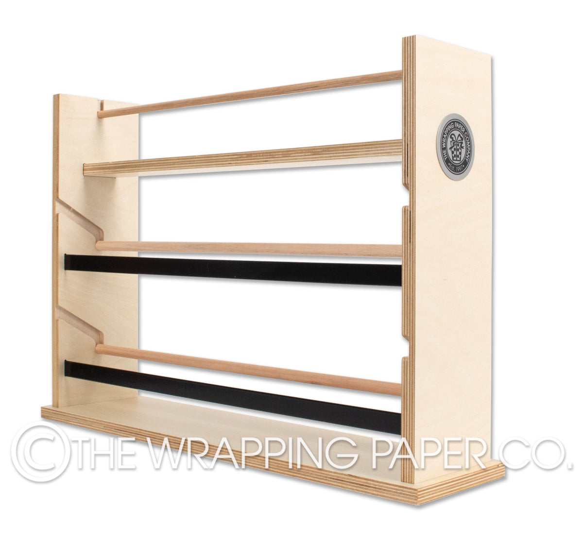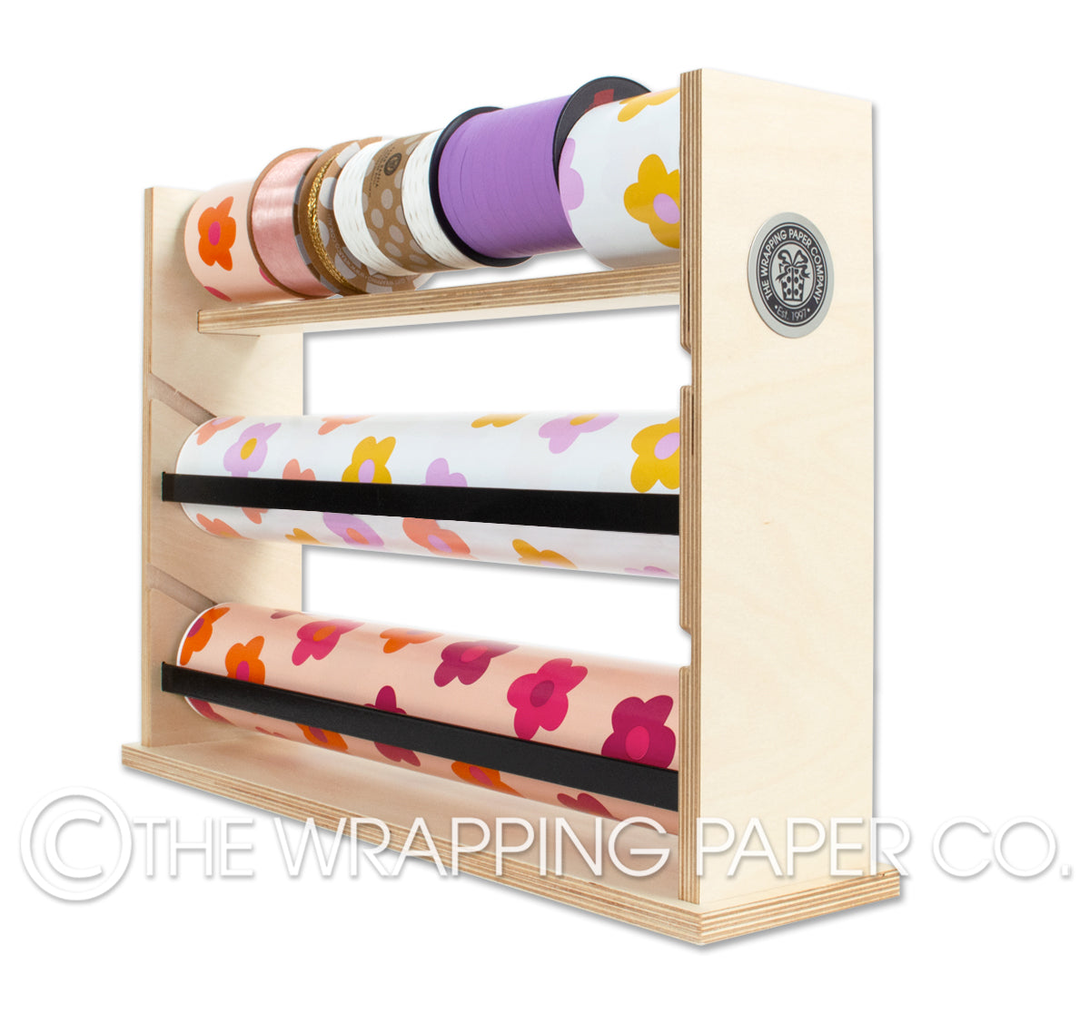 Our new plywood dispenser stands were developed in response to customer requests for a more elegant gift wrapping dispenser product. Each double dispenser stand holds two Wrapco counter rolls (50m x 500mm) as well as a selection of 50m belli-bands and ribbons.The natural plywood dispenser stands are supplied fully assembled and finished in a durable low odour, water based paint.
