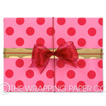 LARGE DOT PINK wrapping paper counter roll 500 mm x 50 mtr gift wrapping paper. Designed & Manufactured in Australia using strong 80gsm matte white paper sourced from certified sustainable plantation forests. All designs are Copyright of The Wrapping Paper Co.