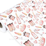 ROSÉ ALL DAY wrapping paper counter roll 500 mm x 50 mtr gift wrapping paper. Designed & Manufactured in Australia using strong 80gsm semi gloss white paper sourced from certified sustainable plantation forests. Designed & Illustrated by Carolyn Dam. All designs are Copyright of The Wrapping Paper Co.