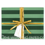 STRIPE GREEN wrapping paper counter roll 500 mm x 50 mtr gift wrapping paper. Designed & Manufactured in Australia using strong 80gsm matte white paper sourced from certified sustainable plantation forests. All designs are Copyright of The Wrapping Paper Co.