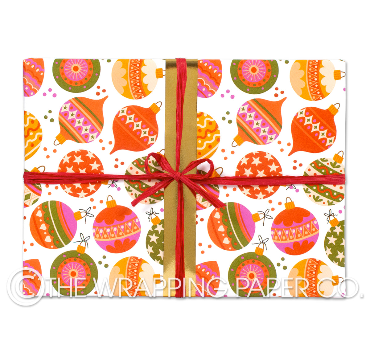 BAUBLES wrapping paper counter roll 500 mm x 50 mtr gift wrapping paper. Designed & Manufactured in Australia using strong 80gsm semi gloss paper sourced from certified sustainable plantation forests. All designs are Copyright of The Wrapping Paper Co.