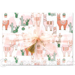 LA LA LLAMA wrapping paper counter roll 500 mm x 50 mtr gift wrapping paper. Designed & Manufactured in Australia using strong 80gsm semi gloss white paper sourced from certified sustainable plantation forests. All designs are Copyright of The Wrapping Paper Co.