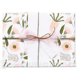 MATT MUSK FLORA wrapping paper counter roll 500 mm x 50 mtr gift wrapping paper. Designed & Manufactured in Australia using strong 80gsm matte white paper sourced from certified sustainable plantation forests. Designed & Illustrated by Carolyn Dam. All designs are Copyright of The Wrapping Paper Co.