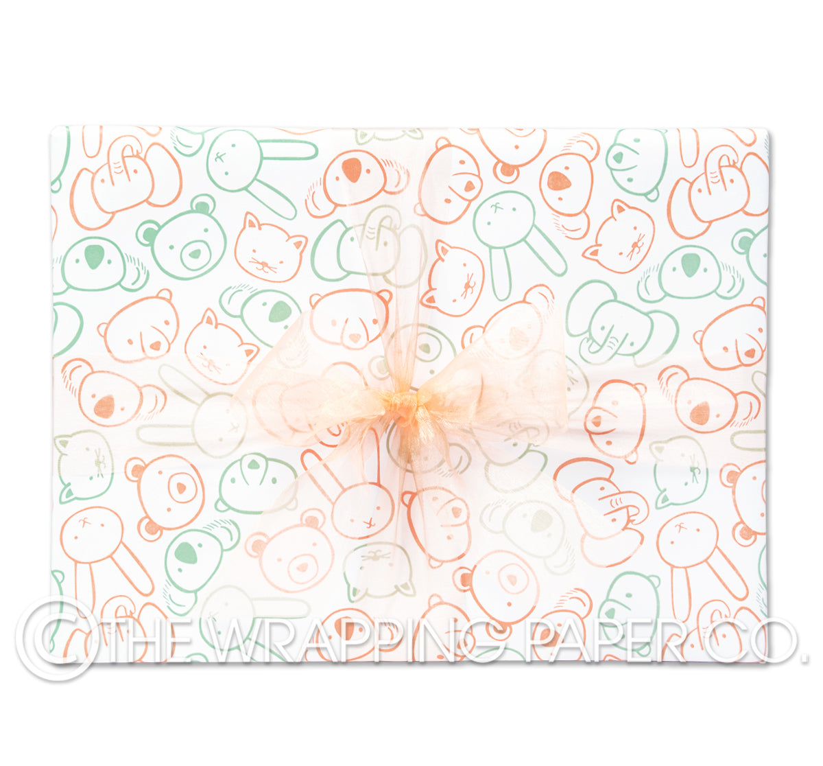 BABY ANIMALS matte wrapping paper counter roll 500 mm x 50 mtr gift wrapping paper. Designed & Manufactured in Australia using strong 80gsm matte white paper sourced from certified sustainable plantation forests. Designed & Illustrated by Chloe Eman. All designs are Copyright of The Wrapping Paper Co.