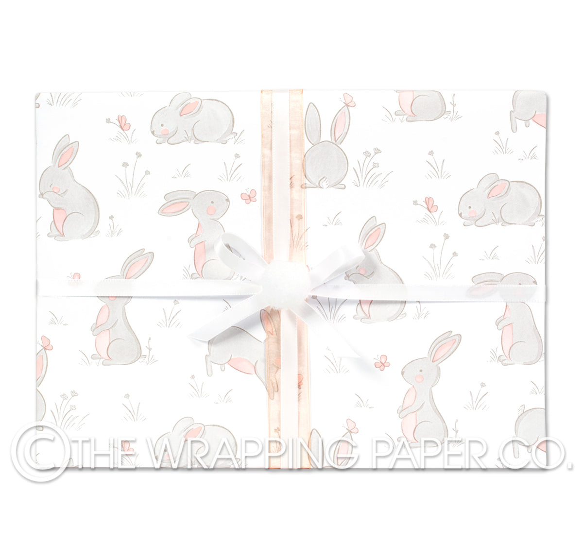 BUNNIES matte wrapping paper counter roll 500 mm x 50 mtr gift wrapping paper. Designed & Manufactured in Australia using strong 80gsm matte white paper sourced from certified sustainable plantation forests. Designed & Illustrated by Chloe Eman. All designs are Copyright of The Wrapping Paper Co.