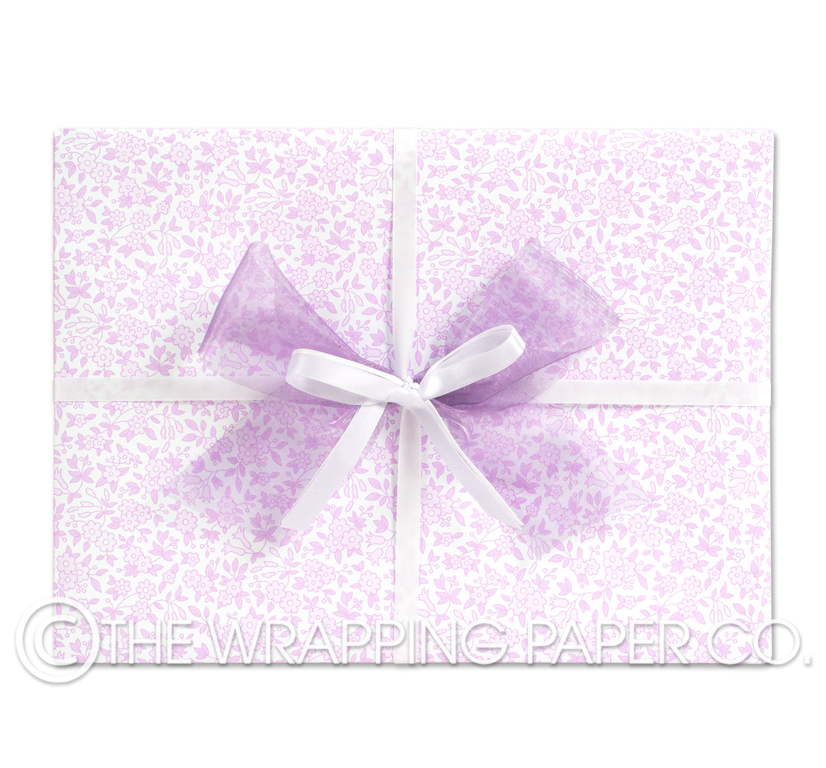 ELOISE LILAC wrapping paper counter roll 500 mm x 50 mtr gift wrapping paper. Designed & Manufactured in Australia using strong 80gsm matte white paper sourced from certified sustainable plantation forests. All designs are Copyright of The Wrapping Paper Co.