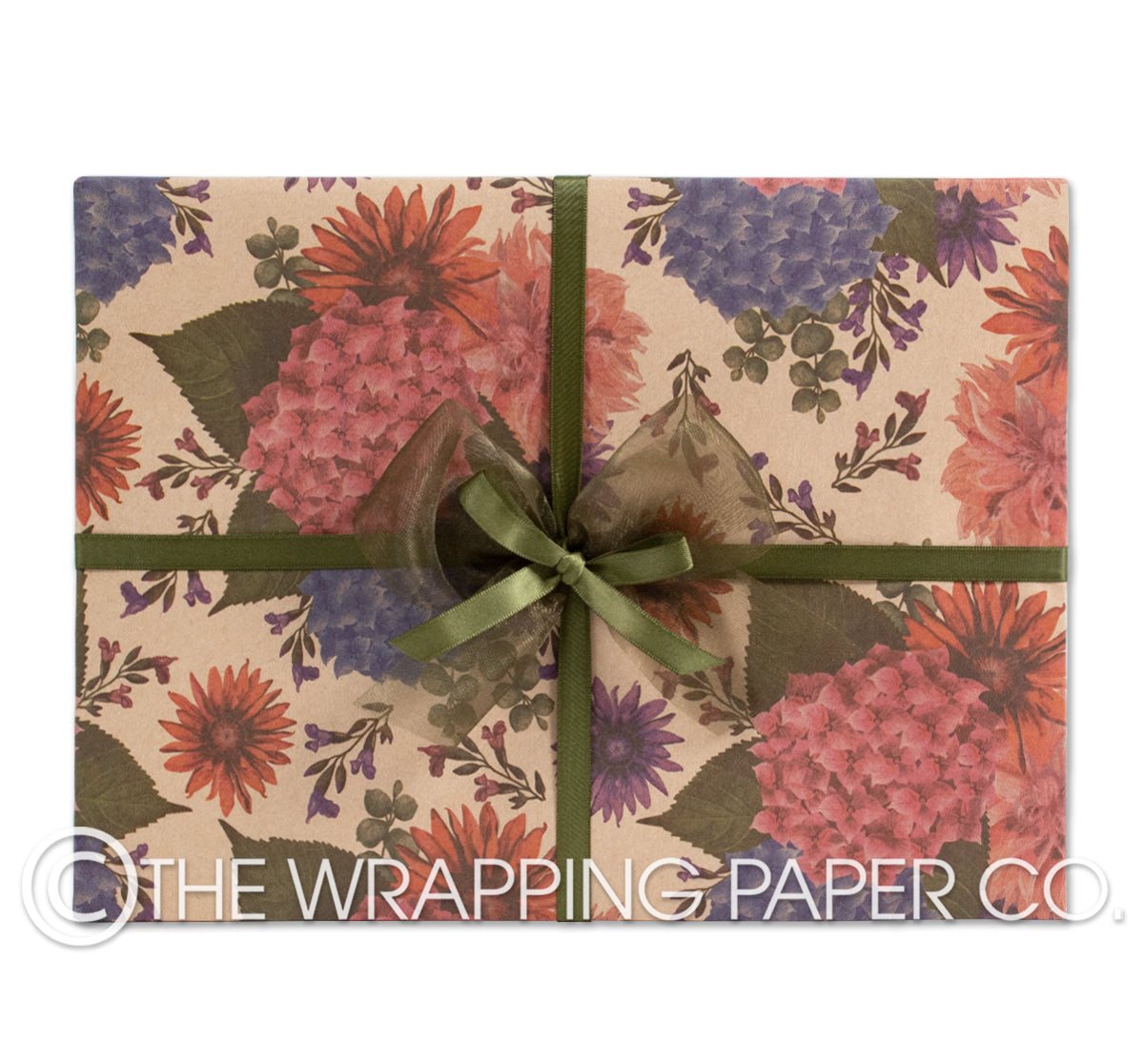 HYDRANGEA POSEY KRAFT wrapping paper counter roll 500 mm x 50 mtr gift wrapping paper. Designed & Manufactured in Australia using strong 60gsm unbleached brown kraft paper sourced from certified sustainable Australian plantation forests.  Designed & Illustrated by Carolyn Dam.  All designs are Copyright of The Wrapping Paper Co.
