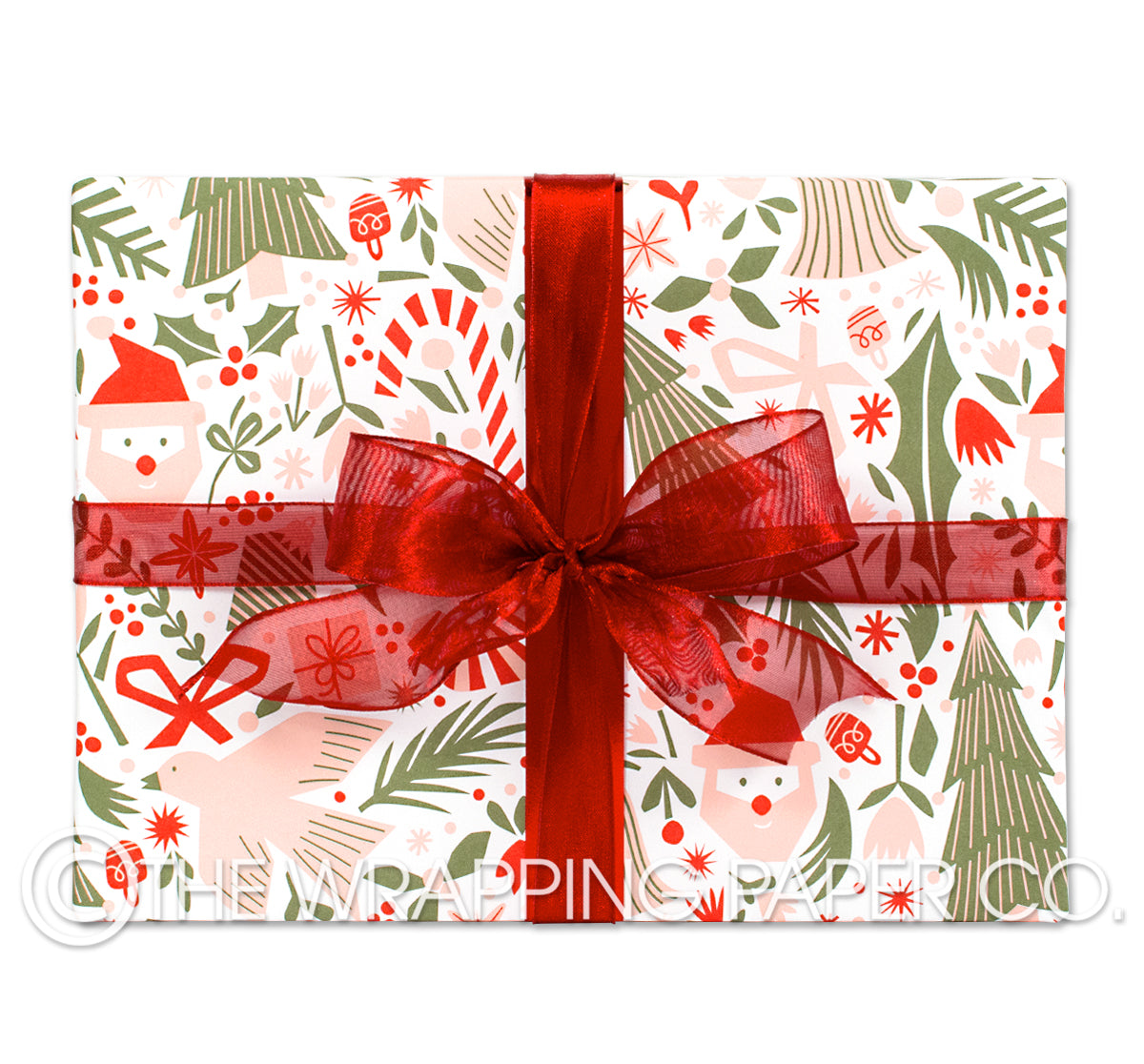 YULE FOREST RED wrapping paper counter roll 500 mm x 50 mtr gift wrapping paper. Designed & Manufactured in Australia using strong 80gsm matte white paper sourced from certified sustainable plantation forests. All designs are Copyright of The Wrapping Paper Co.
