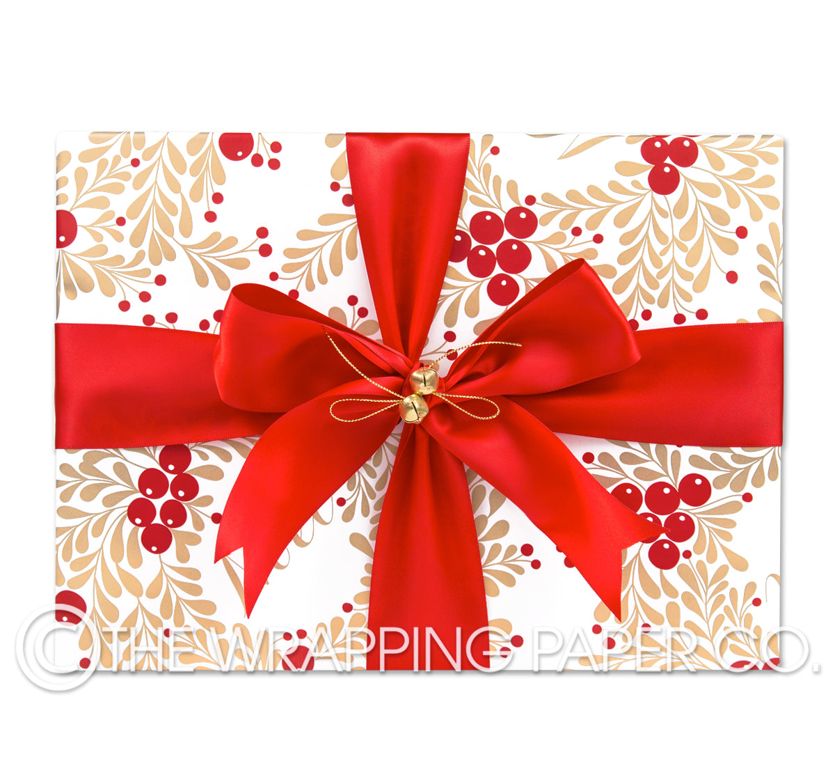 XMAS BERRY WREATH Christmas wrapping paper counter roll 500 mm x 50 mtr gift wrapping paper. Designed & Manufactured in Australia using strong 80gsm semi gloss white paper sourced from certified sustainable plantation forests. All designs are Copyright of The Wrapping Paper Co.