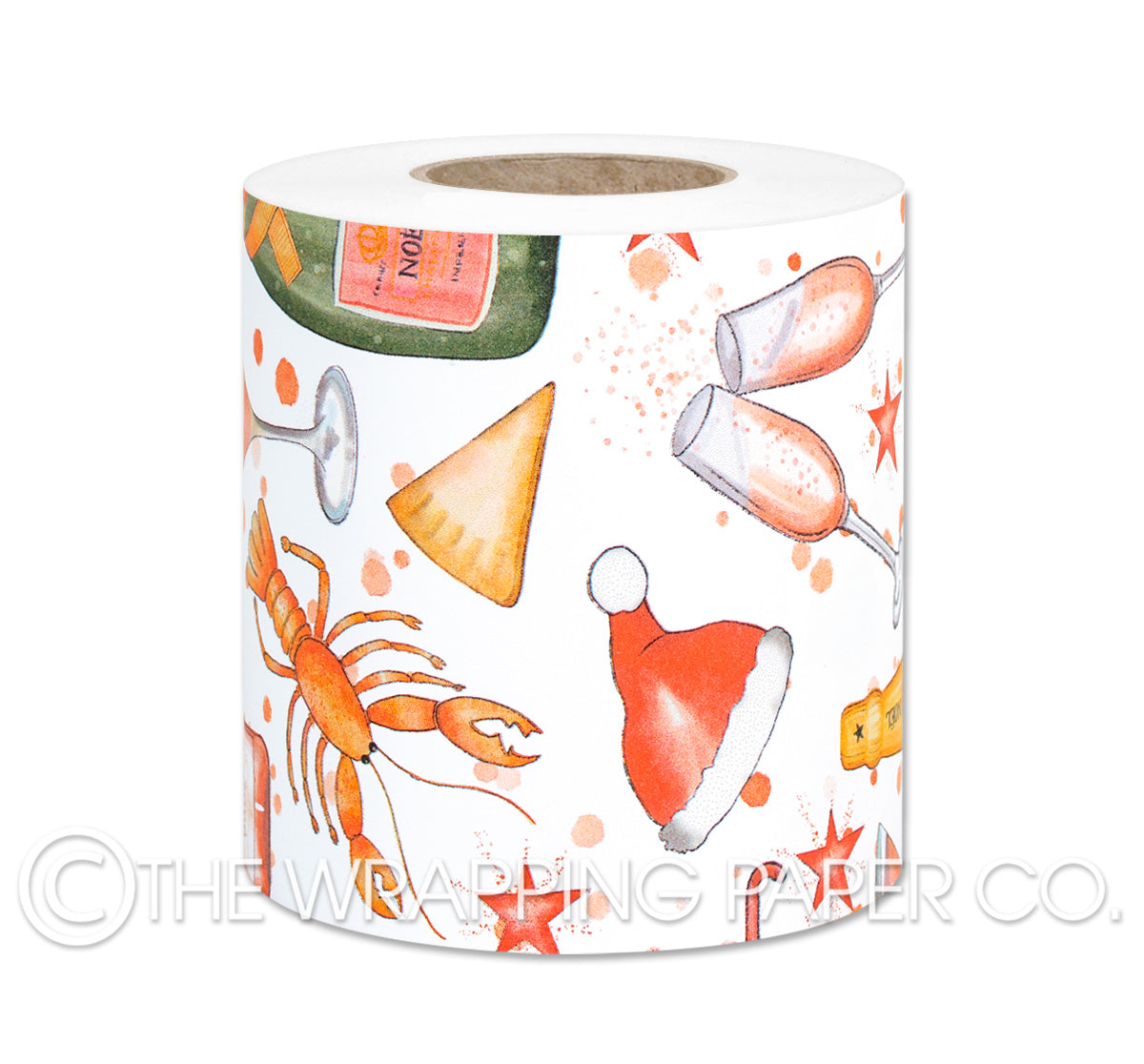 CHRISTMAS CHEER Belli-Band® 90mm x 50 mtr. Designed & Manufactured in Australia using strong 80gsm matt white paper sourced from certified sustainable plantation forests. A Belli-Band is a paper strip of gift wrap used as a decorative embellishment when gift wrapping. Designed & Illustrated by Carolyn Dam. All designs are Copyright of The Wrapping Paper Co.