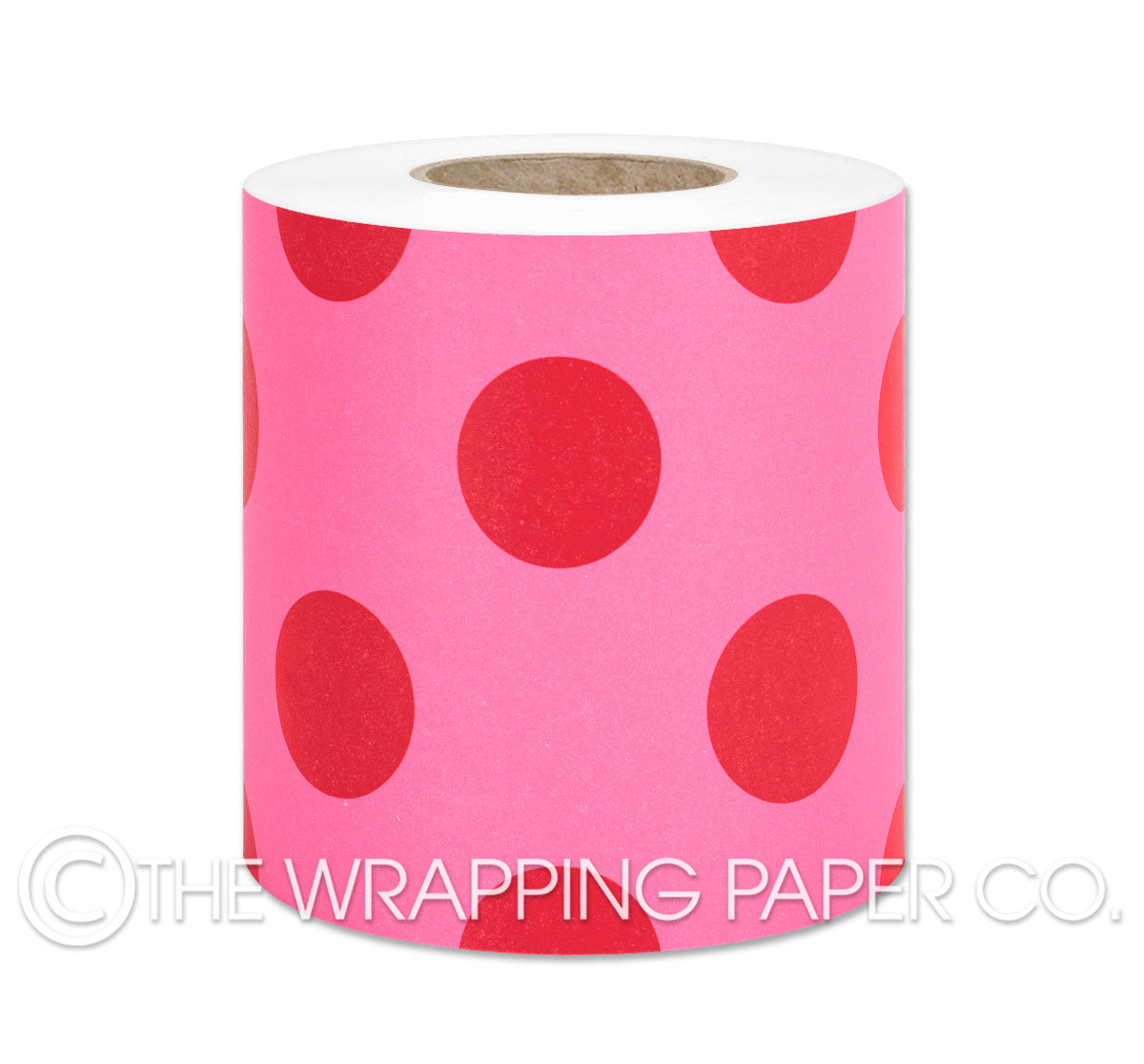 LARGE DOT PINK Belli-Band® 90mm x 50 mtr. Designed & Manufactured in Australia using strong 80gsm matt white paper sourced from certified sustainable plantation forests. A Belli-Band is a paper strip of gift wrap used as a decorative embellishment when gift wrapping. All designs are Copyright of The Wrapping Paper Co.