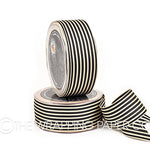 Black and Cream 38mm Grosgrain. Size 38mm x 27m. Manufactured using man made fibre. Country of origin Taiwan.