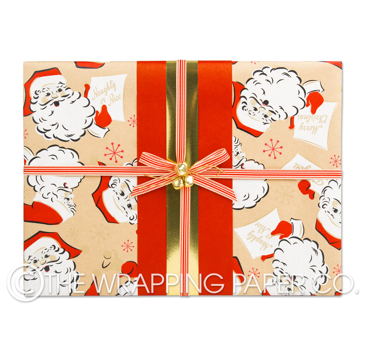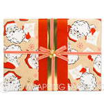 RETRO SANTA RED Christmas wrapping paper counter roll 500 mm x 50 mtr gift wrapping paper. Designed & Manufactured in Australia using strong 60gsm matte brown kraft paper sourced from certified sustainable plantation forests. All designs are Copyright of The Wrapping Paper Co.