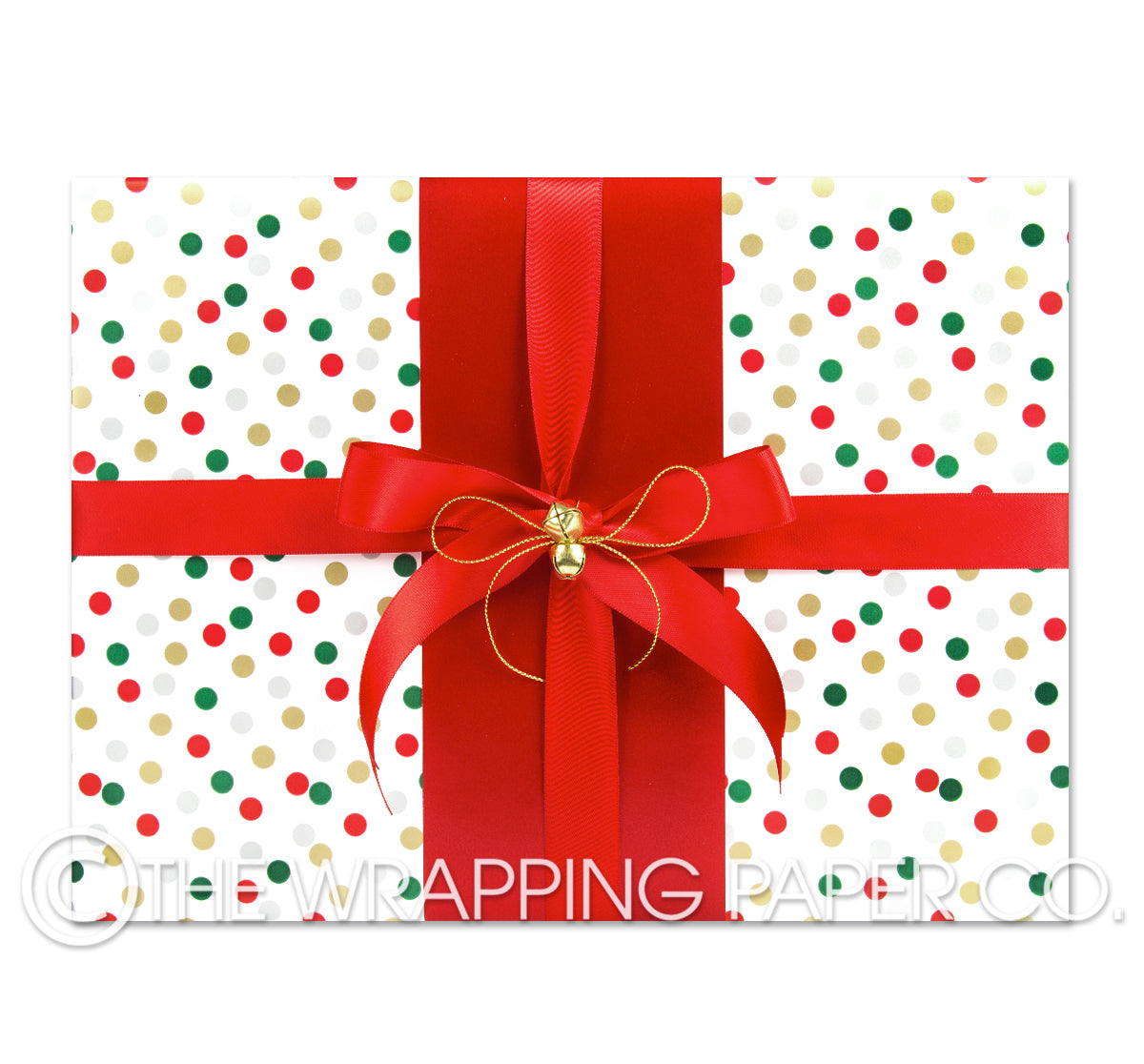 XMAS CONFETTI Christmas wrapping paper counter roll 500 mm x 50 mtr gift wrapping paper. Designed & Manufactured in Australia using strong 80gsm semi gloss white paper sourced from certified sustainable plantation forests. All designs are Copyright of The Wrapping Paper Co.