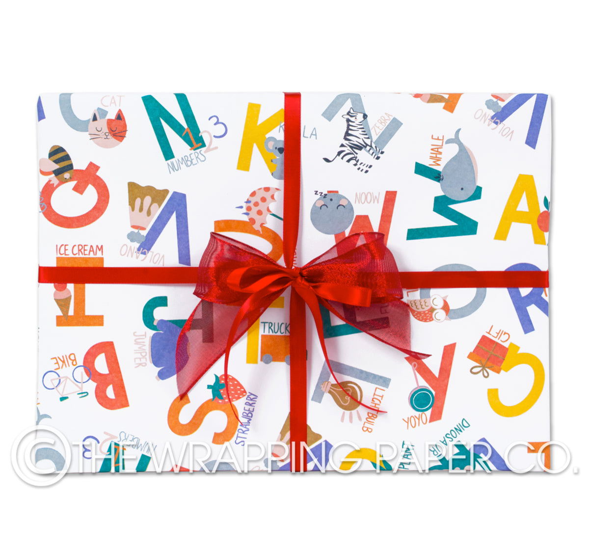 A IS FOR wrapping paper counter roll 500 mm x 50 mtr gift wrapping paper. Designed & Manufactured in Australia using strong 80gsm matte white paper sourced from certified sustainable plantation forests. Designed & Illustrated by Chloe Eman. All designs are Copyright of The Wrapping Paper Co.