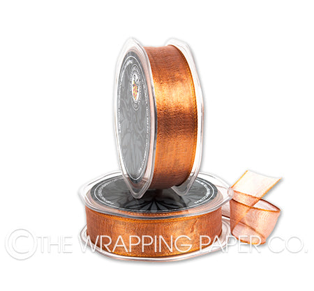 Size 25mm x 20m. Copper metallic wired edge organza. Country of origin Taiwan.