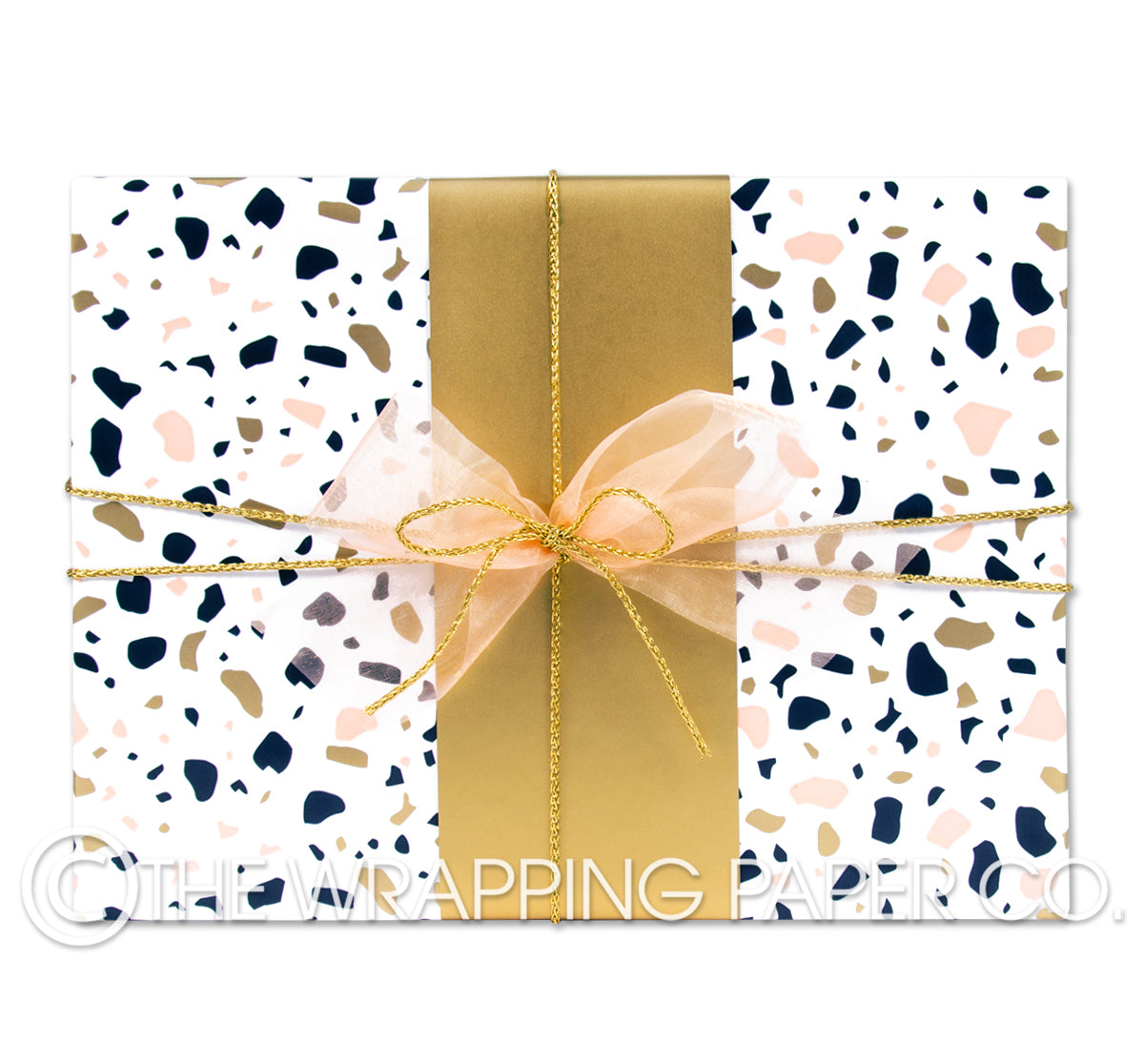 TERRAZZO GLOSS wrapping paper counter roll 500 mm x 50 mtr gift wrapping paper. Designed & Manufactured in Australia using strong 80gsm semi gloss white paper sourced from certified sustainable plantation forests. All designs are Copyright of The Wrapping Paper Co.