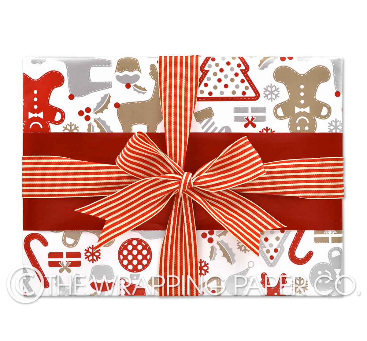 XMAS ALLSORTS LATTE Christmas wrapping paper counter roll 500 mm x 50 mtr gift wrapping paper. Designed & Manufactured in Australia using strong 80gsm gloss white paper sourced from certified sustainable plantation forests. All designs are Copyright of The Wrapping Paper Co.
